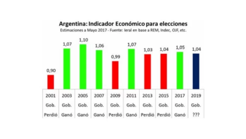 Para ponerle más dramatismo a las próximas presidenciales, el modelo del IERAL muestra que la economía argentina llegaría a octubre en valores del 1,04, el mismo escenario con el que Scioli (oficialismo) perdió en segunda vuelta por escaso margen.