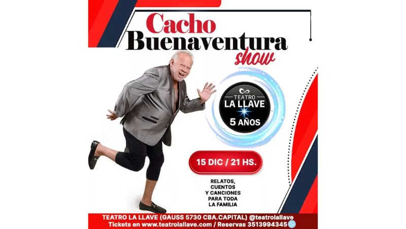 El 15 de diciembre actuará Cacho Buenaventura, será una única función con un ticket de $ 8.000. (Consejo: apúrense para comprar porque hay muchos cordobeses ilusionados con este regreso)