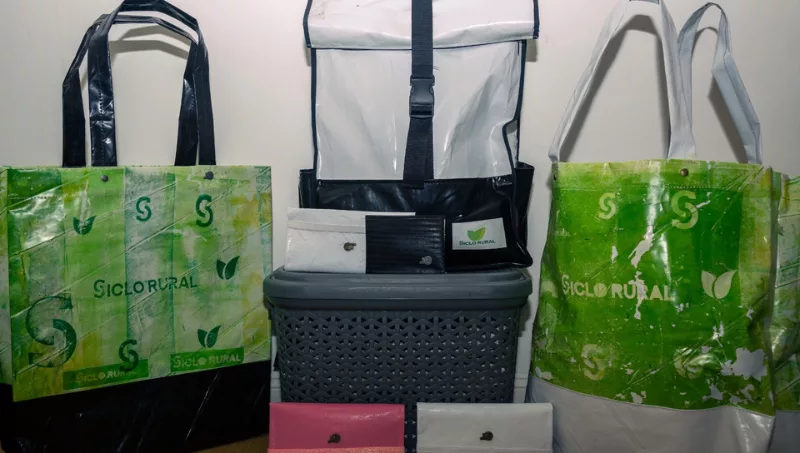Con los residuos de las silobolsas, diseñan y crean originales accesorios como mochilas, bolsas y materas, dándoles una segunda oportunidad a estos residuos que sino terminarían en los vertederos.