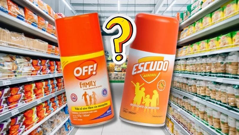 En este caso, el ejemplo que se abordará es el de “Off” y “Escudo”, dos repelentes que, a simple vista en el supermercado, y más si estás apresurado/a haciendo las compras después de trabajar, te resultan totalmente iguales.
