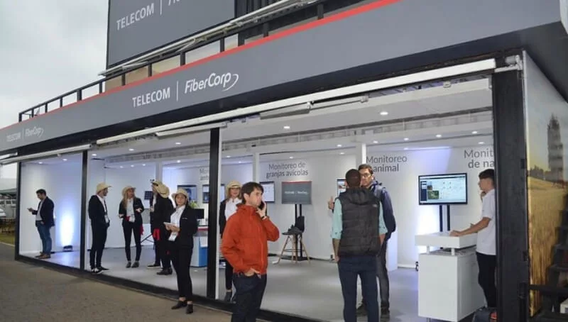 El stand de Telecom-FiberCorp, estuvo enfocado en soluciones para el agro de monitoreo para granjas avícolas, napas, animales y ambiental. Destacándose por la puesta en marcha con baja inversión inicial, rápida implementación y soluciones fácilmente escalables.