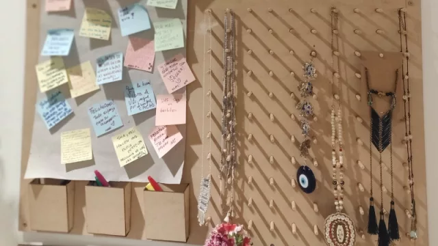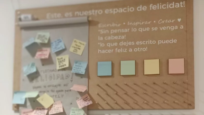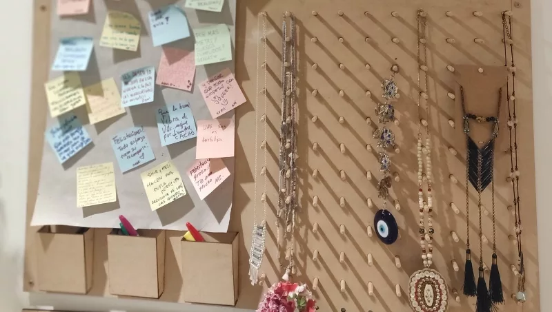 La experiencia se completa al momento de acercarse a la caja. Un panel interactivo con una consigna semanal invita a dejar una historia, anécdota o mensaje. “Las clientas leen lo que las anteriores escribieron, incluso a veces responden y se ríen”, comenta Shirli.