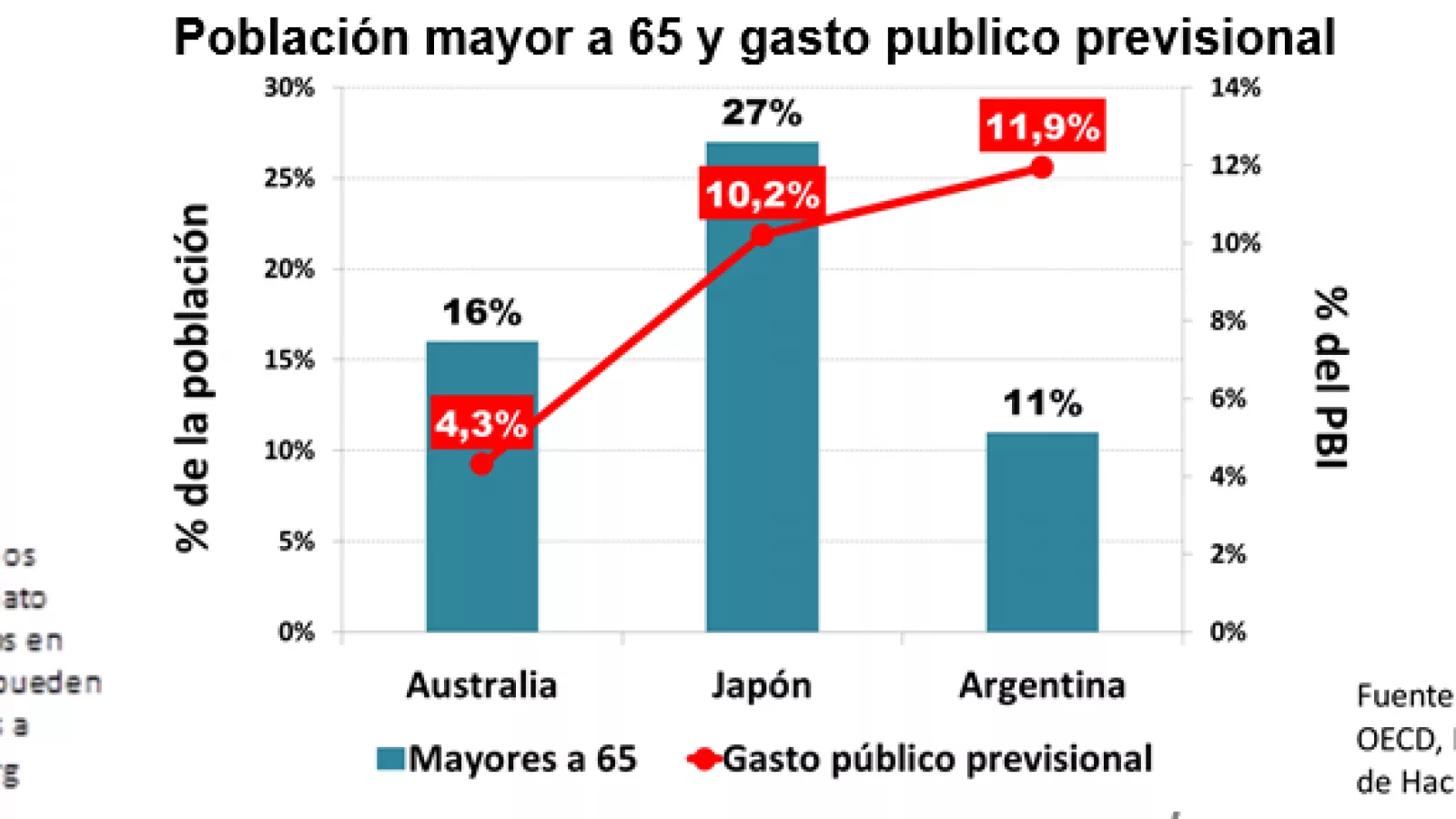 - Australia tiene el 15% de su población con edades mayores a 65 y su gasto público previsional es de 4,3% del PBI.