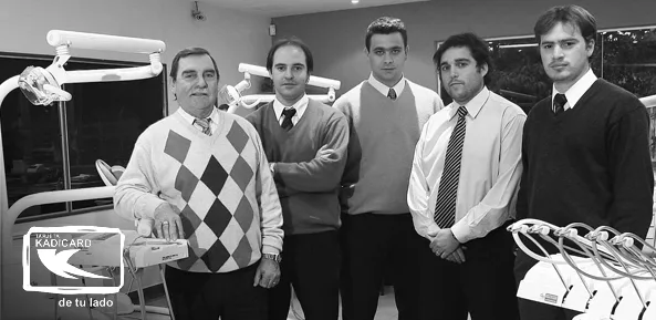 El equipo de Denimed: Jorge Robotti, presidente; Nicolás Robotti, director comercial; Damián Yatzkaier, responsable comercial Sur y Cuyo; Alejandro Romano, responsable comercial Buenos Aires; Manuel Tello, responsable comercial Norte y Litoral y ausentes en la foto, Tomás Kopsic, venta de salón y José Flores, sucursal Buenos Aires. (Foto: Álvaro Corral)