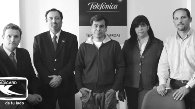 El equipo de Telefónica en Córdoba: Carlos Federico Alasia, jefe comercial de negocios; Pablo César Martín Caretó, responsable de venta directa zona norte y RRII Córdoba; Daniel Aguilera, ejecutivo de cuentas; Ana Graciela Farías, ejecutiva de empresas y Javier Guardeño, responsable de nuevos emprendimientos. (Foto: Álvaro Corral)