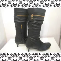 Botas negras de curo con detalles en dorado y suela antidelizante.