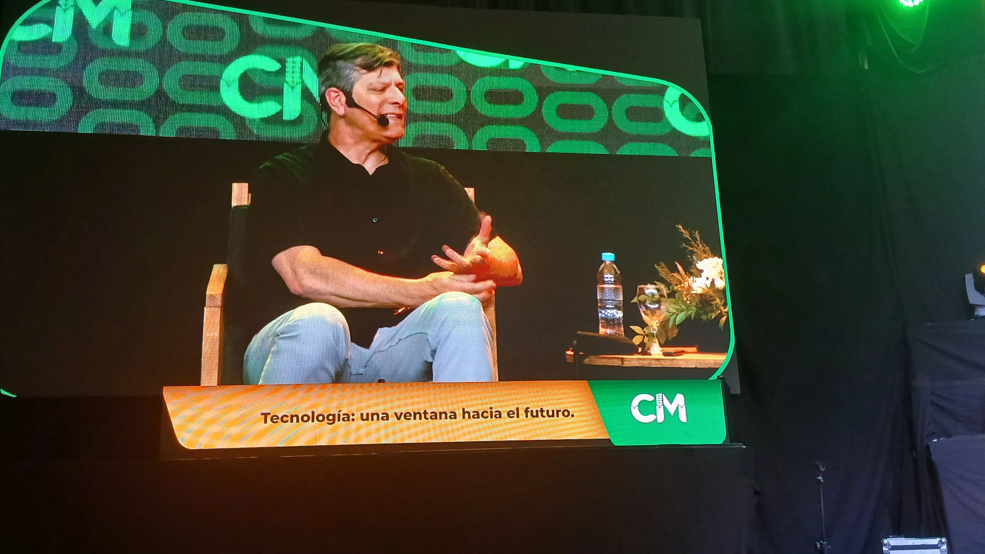 En vivo el conductor y presentador dividió su exposición en tres momentos, haciendo una autobiografía desde sus comienzos en radio a los 16 años hasta la actualidad,mostrando en pantallas el desarrollo de la inteligencia artificial que ya le permite tener una presentadora propia Fernanda, quien en breve saldrá al mundo laboral, o demostrar como puede un presentador humano tener siete versiones en distintos idiomas generado por IA casi imperceptible al ojo humano.