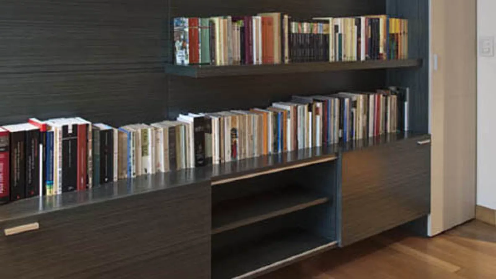 El hábito perdido de la lectura dejó obsoleto el antiguo cuarto destinado a escritorio, simplificando ese ambiente con una biblioteca importante capaz de definir el carácter de un espacio e integrar el esparcimiento de los habitantes de la casa. Por lo general hoy se conciben de piso a techo y ocupan un muro entero de la vivienda, toman formas desestructuradas y ya casi no se fabrican de madera maciza. Triunfaron los enchapados que, en la mayoría de los casos, procuran un mejor acabado y son más económicos. “He tenido que salir a comprar libros porque a veces los clientes tienen en la mitad del living una biblioteca vacía –comenta la arquitecta Viviana Melamed, que ha hecho del diseño de este mueble su especialidad. “El televisor es amo de la escena, el home es donde sucede la vida familiar, por eso las bibliotecas modernas están trabajadas igual que el resto del espacio. El fondo es vital porque les da entidad y las termina de armar, y la mayoría son confeccionadas con estantes de 18 milimetros, o bien dobles, es decir que resultan estantes de 4 cm. Estos pueden tener ser aéreos, con frentes quebrados, laterales asimétricos, grilla más regular, con sectores cerrados, cajas verticales cortando la habitual horizontalidad, entre otras opciones” agrega.