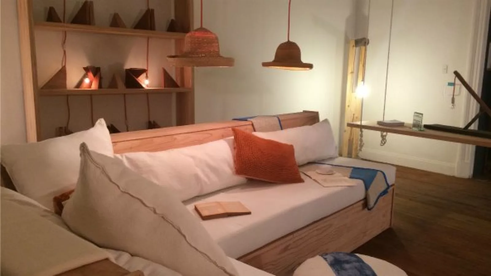 De esta manera encontramos desde espejos con figuras geométricas y mesas de madera minimalistas hasta camas y lámparas flotantes (ver fotos en la galería).