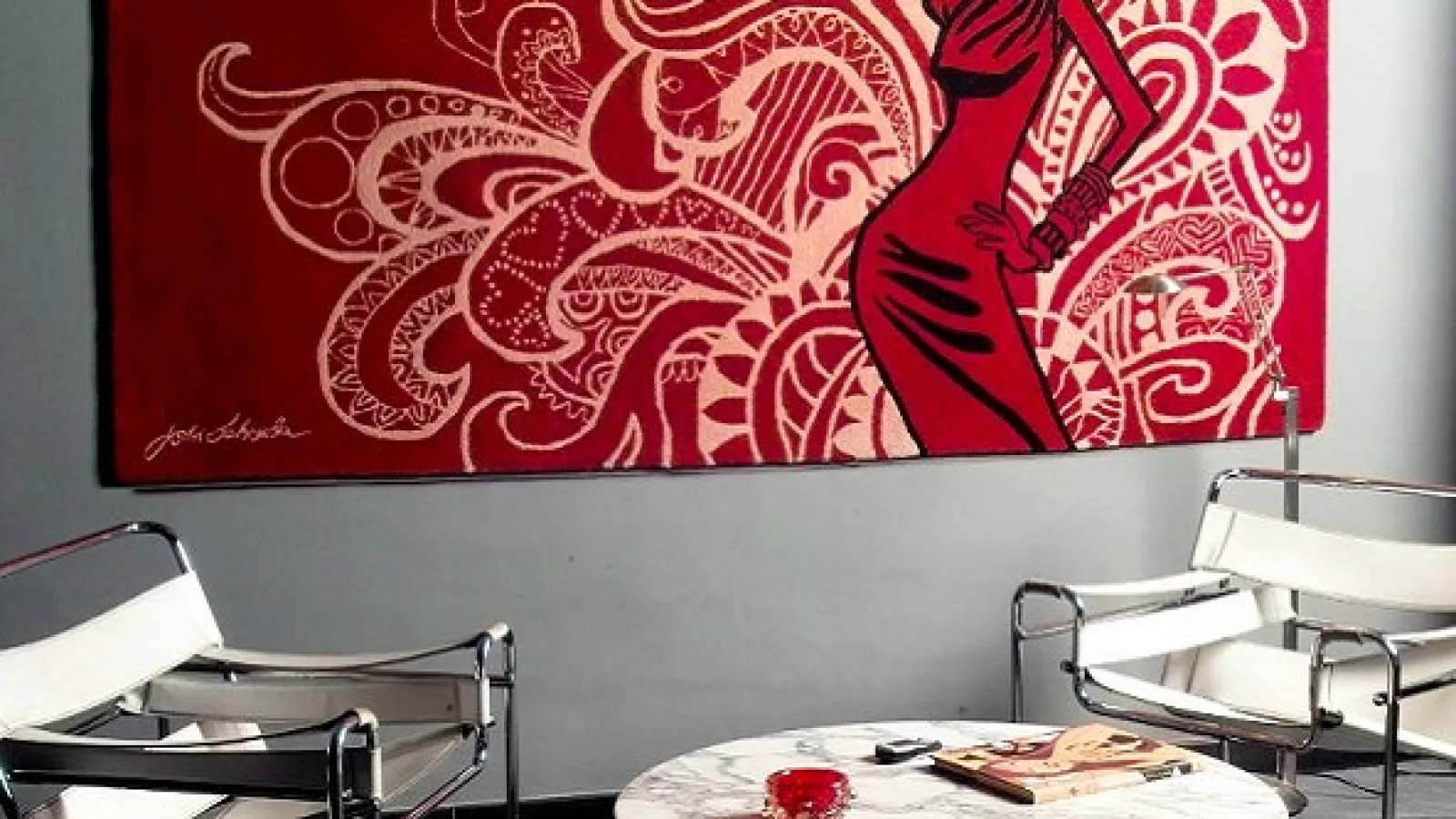 Las alfombras como cuadros, otra opción para sustituir pinturas e innovar con el material implementado.