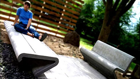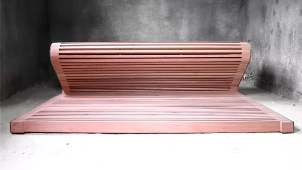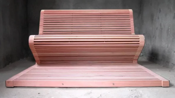 Desde la forma, se trata de un asiento de perfil tipo “Z” como derivación de una “S” (o bien conocido como cantiléver). Está configurado con láminas y viene con y sin respaldo, en madera y hormigón.