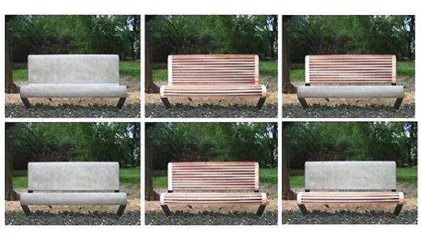 Las tres líneas son de uso exterior. “Recomendamos la opción de hormigón por ser ‘antivandálica’ (sic) y de mantenimiento prácticamente nulo aunque pierde detalles frente a las de madera”, detalla la arquitecta.