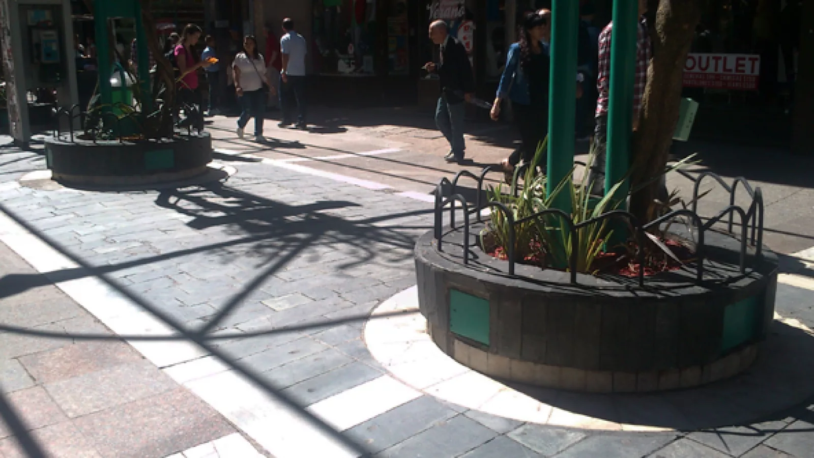 Sin embargo, los tradicionales canteros que ahora contienen a los troncos de las santas ritas cuentan con rejas lo que imposibilita a los peatones sentarse. Desde el estudio explican que la única forma de poder sentarse al aire libre en la peatonal es haciéndolo en algún bar con mesas y sillas disponibles. Claro, con consumición a cargo. “El ciudadano es reemplazado por el consumidor -señalan los especialistas y agregan- el espacio público e inclusivo pasa a ser un espacio privatizado y exclusivo, privilegio de unos pocos, desplazando hacia las periferias al que no compra”.