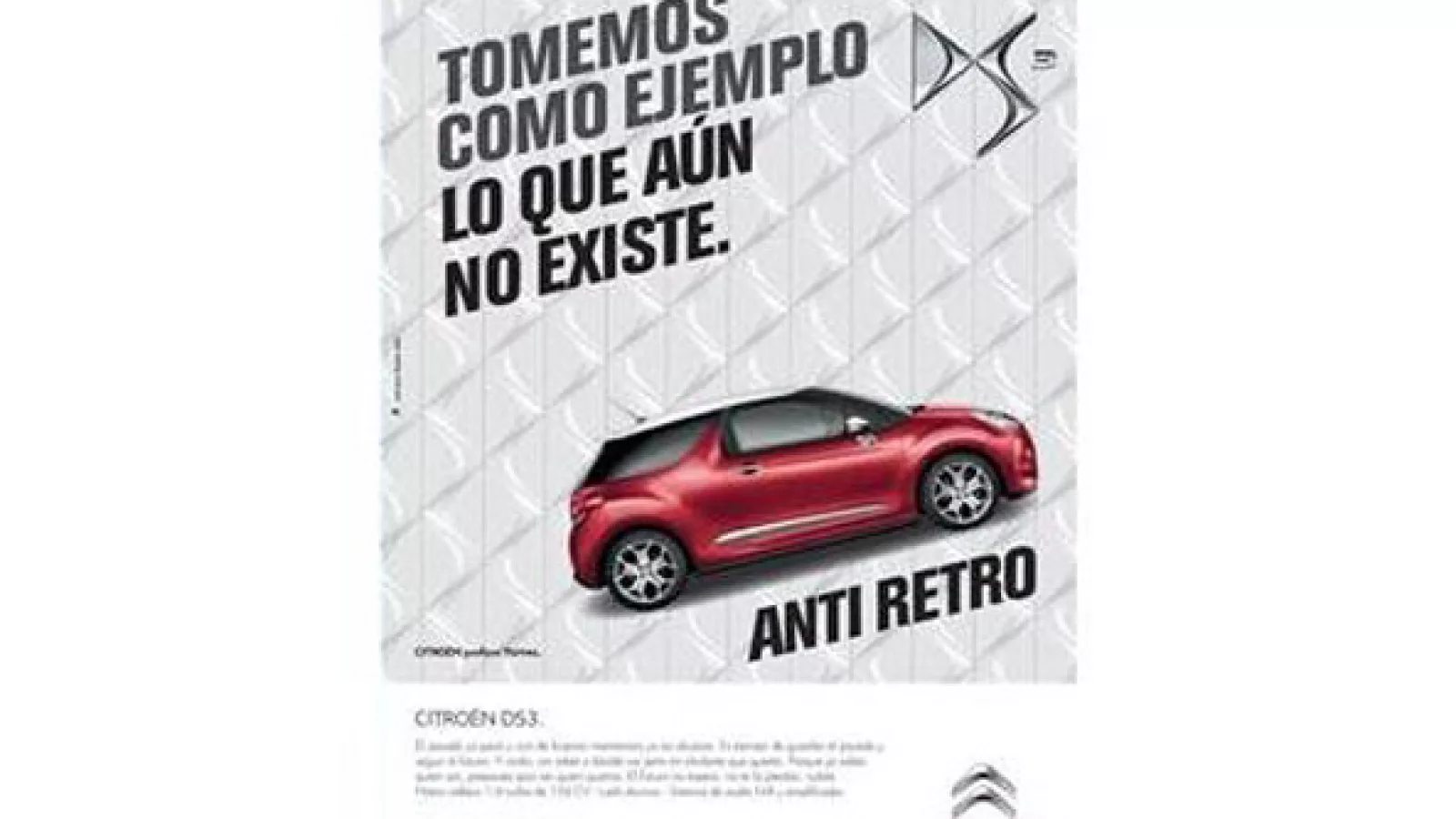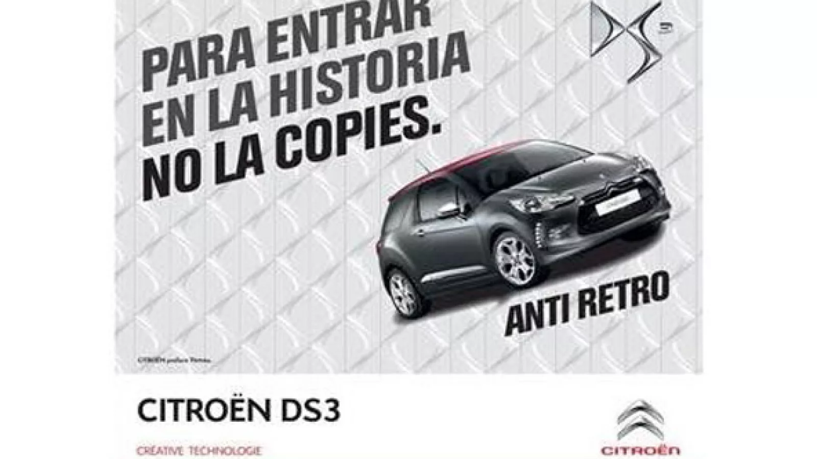 Con la llegada de la línea DS, la marca vuelve a desafiar los límites y realiza el lanzamiento publicitario del Citroën DS3 bajo el concepto de Anti-Retro como eje de campaña.