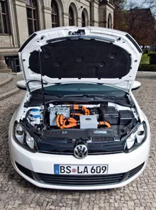 Sus baterías son de Ion-Litio y ocupan parte del baúl y el espacio debajo del asiento trasero, limitando la capacidad de aquel a 237 litros. Su peso -1545 kg- es superior en 200 al del modelo TDI.