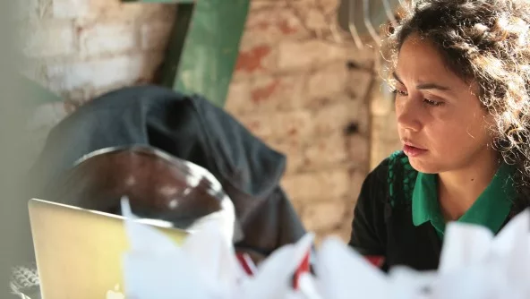Cecilia Bazán, responsable de Redes, activándolas durante el desayuno.