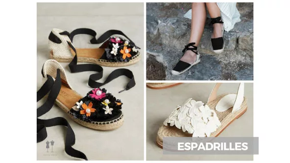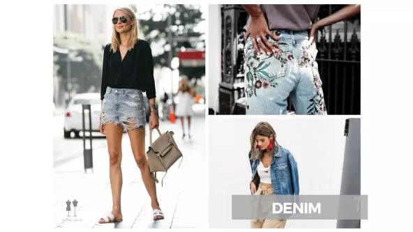 El Denim, en coloración vintage, cortes culottes o mom, faldas cortas con botonadura delantera, chaquetas amplias y retro. Repletos de parches, pines, bordados y roturas. El Metalizado también se reinventa tanto en calzado como en prendas. En los pies: mules, espadrilles y tacones medios cuadrados, liderando el podio. Pompones, borlas, flecos, moños, lazos y hasta flores en 3D este año adornan todo tipo de calzado.