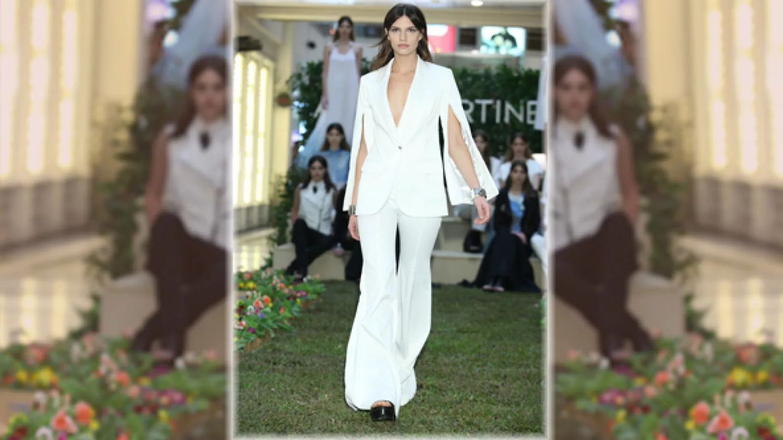 Allo Martinez;  traje sastrero en blanco tiza, con tajo abierto en mangas.