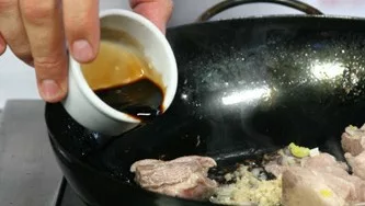 Saltear las costillas en aceite condimentar y agregar los vegetales.