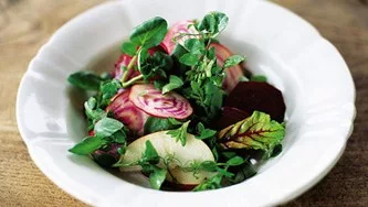 Remolachas, manzanas y berro en una ensalada espectacular
