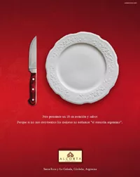 Como parte de la campaña que está desarrollando Romero Victorica para su cliente Alcorta, la agencia ideó un aviso de gráfica (foto) que busca resaltar el eje que la empresa tiene puesto en la excelencia y en su definición de producto: “el restorán argentino”, uniendo ambas cosas y trabajando en el posicionamiento de la marca.
