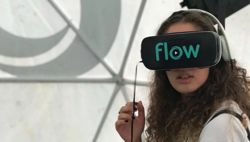 En el playón municipal Flow montó un super stand con una carpa 360 y un camión para que los visitantes realicen un un recorrido con experiencia de realidad virtual.