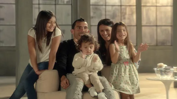 El comercial también contó con la participación de los miembros reales de su familia, su esposa y sus tres hijos, aportando emoción y cercanía al mensaje.