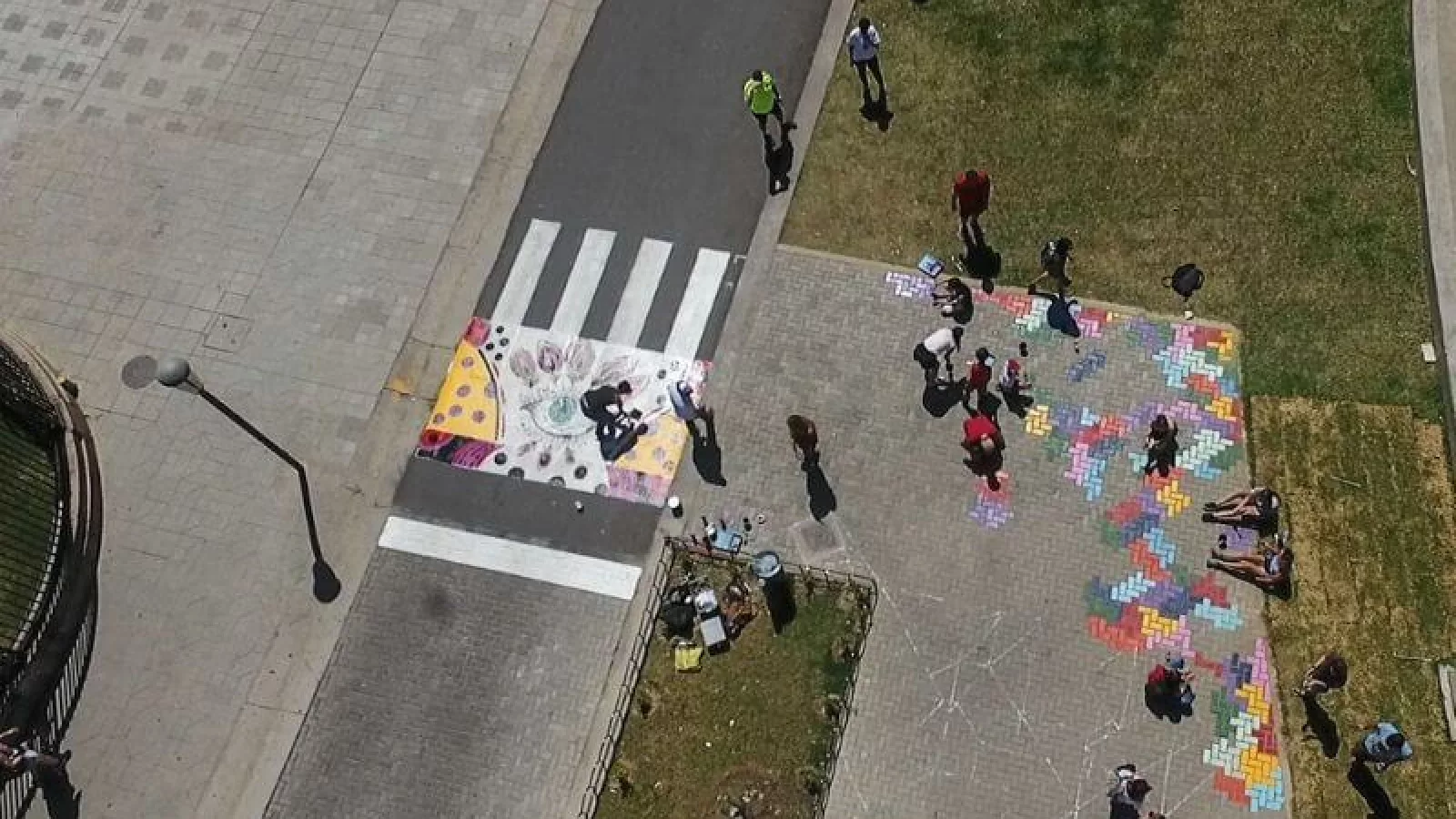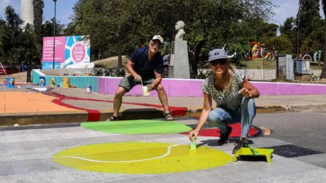 Las obras encontraron diferentes temáticas para ser interpretadas, tanto en formato aéreo como terrestre; así Silvana y su equipo buscaron contar nuestra idea de tranquilidad con la obra “Córdoba en mandalas”, pensando en los lugares serranos y sus colores y transmitiendo toda la paz y la recarga de energía cuando los visitamos. Mex y cía realizaron una especie de chiste cordobés, con palomas y gallinas con emojis que no dejan de ser un clásico de nuestra ciudad y campo, pero mirado con el típico humor de nuestra ciudad. Y cerrando, Rubén Ramonda ideó poner en ejemplo de inclusión, el espíritu de Gustavo Fernández, quien probablemente terminará este año como número 1 en tenis adaptado, justo en la sección sur de plaza España, en donde se encuentran los accesos para las personas con problemas de motricidad.