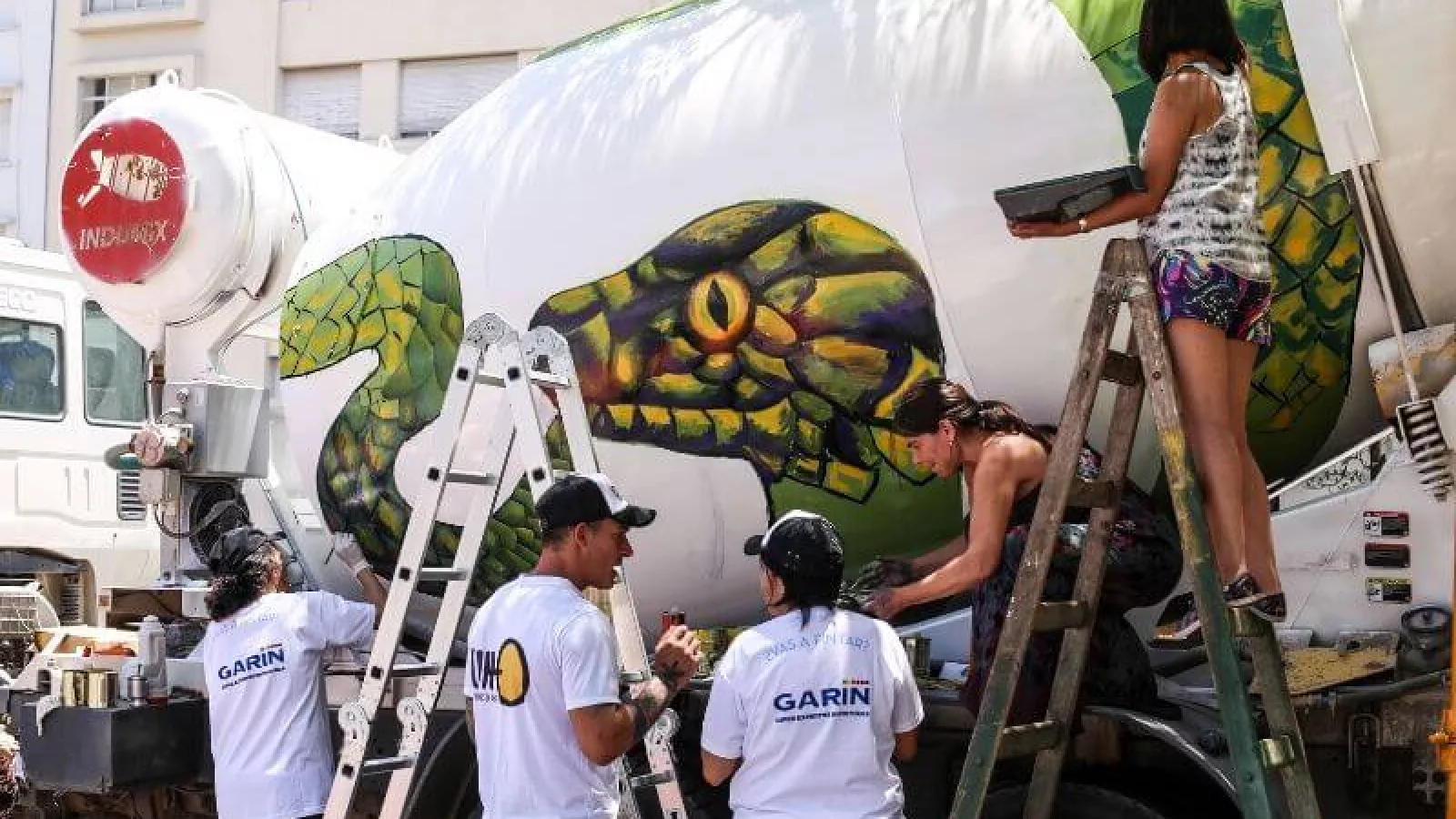 Por su parte, Ivana Heredia intervino el trompo del camión hormigonero, con una interpretación del conocido Uroboros, que representa la naturaleza cíclica de las cosas. Cultura, tránsito y vialidad municipal, participaron activamente en las intervenciones, para lograr los cierres estratégicos pero parciales de Plaza España, en la declaración del evento como de interés cultural para la ciudad y en todo lo realizado para cuidar a los vecinos durante las obras.