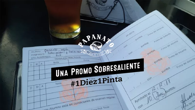 La que está vigente ahora es la #PromoSobresaliente que premia a los que se esfuerzan por llegar al "diez" en un examen final. Con la nota máxima, la libreta firmada y con mucha sed, el estudiante puede reclamar por su pinta de cerveza artesanal.