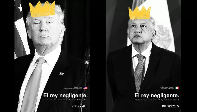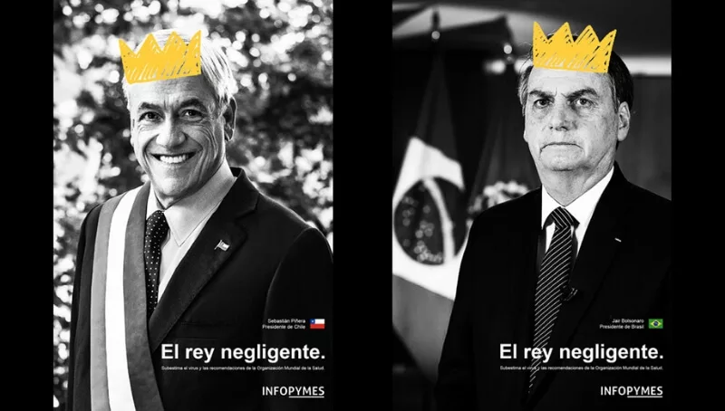 “Desde Avión de Papel en conjunto con nuestro cliente Infopymes fijamos nuestra postura en contra de aquellos líderes que no siguen las recomendaciones de la OMS (Organización Mundial de la Salud) en esta catastrófica pandemia poniendo en juego la vida de los ciudadanos”, comienza Lucho Valenzuela, director creativo de la agencia.