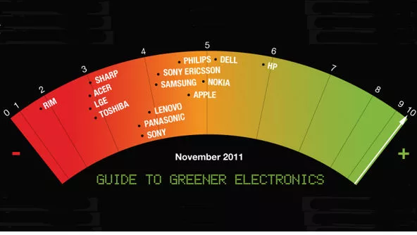 En su sitio la agrupación ambientalista destaca que la Guía Verde de Electrónicos de Greenpeace es considerado el ranking de más confiable al respecto, desde 2006. En ésta, su 17 ª edición, la Guía se ocupa de los 15 principales fabricantes de teléfonos móviles, TV y PC en lo referente a sus políticas y prácticas para reducir su impacto sobre el clima, la producción de productos más ecológicos y hacer sus operaciones más sostenibles. Así califica a cada una con su fundamentación: