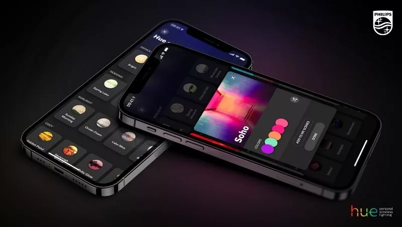 Signify ya ha anunciado una próxima actualización de la nueva aplicación Hue con escenas dinámicas que se lanzará en el verano de 2021. Con esta característica, cada una de las luces de una “Habitación” o “Zona” hará una transición lenta, a través de los diferentes colores de la escena dinámica. En lugar de que cada luz permanezca en un solo color, las escenas dinámicas introducen un nuevo nivel de efectos únicos y crean una atmósfera como ninguna otra.