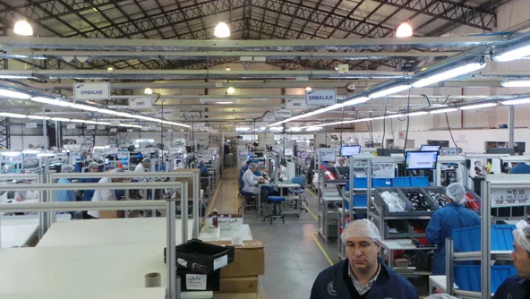 Acompañados por Alejandro Mayoral, presidente de Afarte, la primera fábrica que visitamos es la de Brighstar, allí nos recibió Hugo Bonifacini, gerente de relaciones gubernamentales e institucionales junto a Lorena Reatti, directora de marketing para Sudamérica.