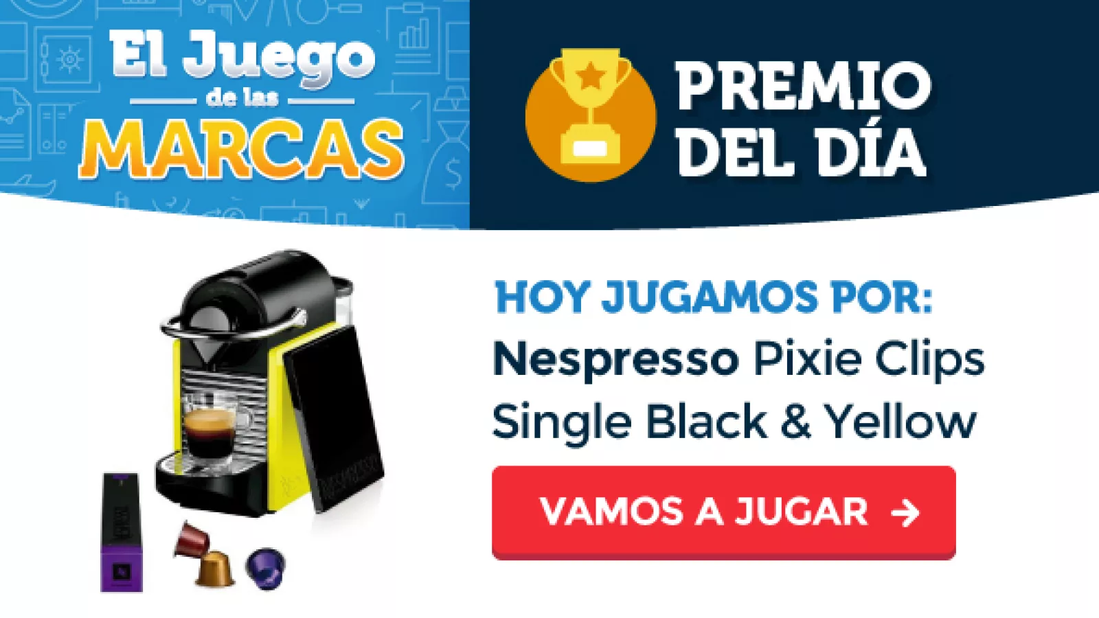 ¿En tu casa u oficina no vendría bien una Nespresso? Ese premiazo sale o sale hoy en la Ronda 6 de El Juego de las Marcas con que InfoNegocios celebra sus primeros 14 años. Para participar sólo hace falta que tengas una cuenta en Linkedin y hagas clic aquí.
