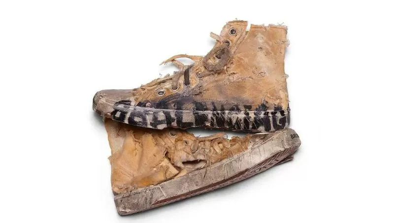 “Edición limitada. Algodón y caucho completamente destruidos. Rasgaduras por toda la tela. Hecho en China”. Así se presenta el último diseño de zapatillas que Balenciaga, la exclusiva marca de ropa de origen español y con sede en París, lanzó semanas atrás al mercado. La descripción puede leerse en su web, junto a fotos que muestran calzados repletos de tajos, agujeros y un aspecto que busca aparentar una suciedad y un desgaste extremos. Los 100 pares de la edición “Paris High Top Trainers Full Destroyed” (Zapatillas Paris High Top completamente destruidas) se agotaron rápidamente y hoy, junto a la lista de talles, los interesados en adquirirlas se encuentran con la leyenda “coming soon” (disponibles próximamente). ¿El precio? 1850 euros (unos 237.000 pesos argentinos al cambio oficial; más de 400.000 según la cotización “blue”).
