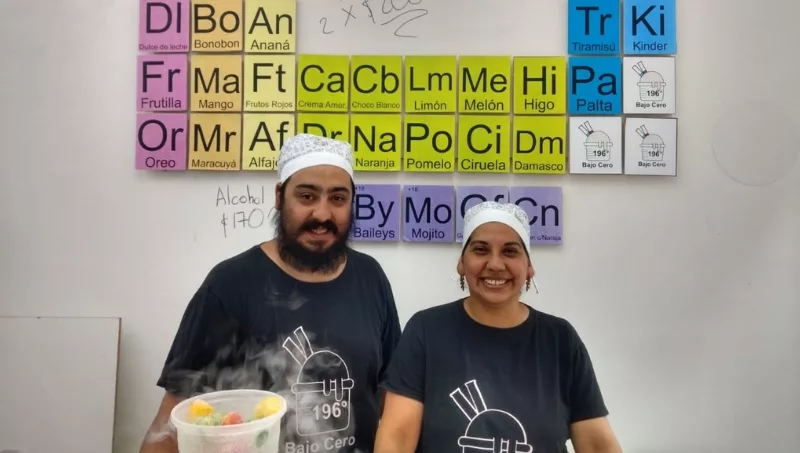 Paola Olivera y Damián Marchese son pareja y ahora socios. No vienen del mundo de la gastronomía (Paola es modista y Damián, diseñador gráfico) pero pasaron muchos meses estudiando y experimentando el “arte” de hacer cremas heladas con el gas.