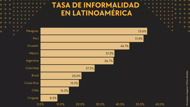 Lo cierto es que a pesar de las diversas iniciativas implementadas para reducir la informalidad laboral, Argentina sigue ocupando un lugar preocupante en el ranking regional, situándose en el quinto puesto con un 36,7% de empleo no registrado. Esta cifra la ubica por encima de países como Colombia (27,2%) y Brasil (20,6%), pero aún lejos de los niveles más bajos registrados en Uruguay (8,5%) y Chile (14,3%).