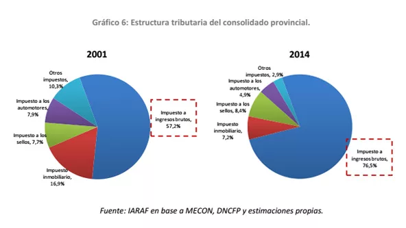 “Mientras que en 2001 el IIBB representaba un 57% de la recaudación propia provincial, actualmente, 3 de cada 4 pesos que recaudan las provincias corresponden al IIBB”, resume IARAF en su último análisis.