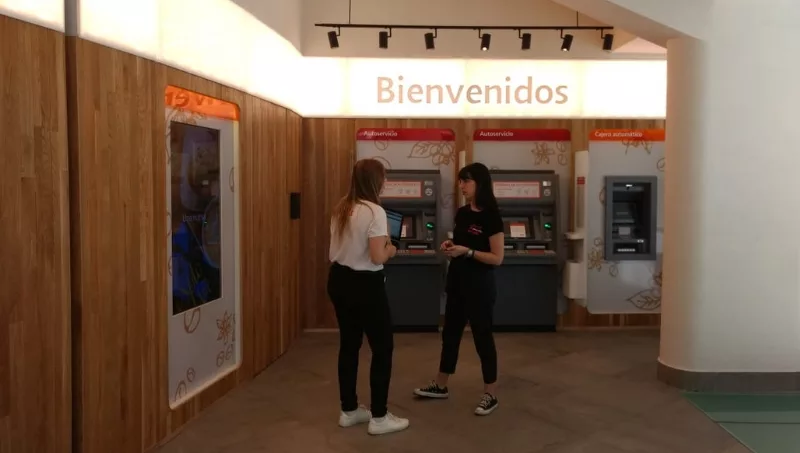 Los usuarios pueden realizar retiro de efectivo, depósitos, pago de tarjeta y hacer consultas a través de la computadora, el teléfono o dos asistentes que están a disposición del público.