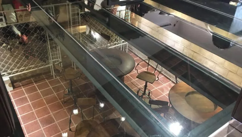 Cuando uno ingresa se encuentra con un gran lobby que combina diferentes espacios, la recepción, un living con piso de vidrio que permite visualizar la cava en el subsuelo y una larga mesa de mármol (para 26 personas) pensada para que los huéspedes compartan allí desayunos, almuerzos y cenas. Aunque la ambientación es bien rural, los muebles fueron traídos de la India.