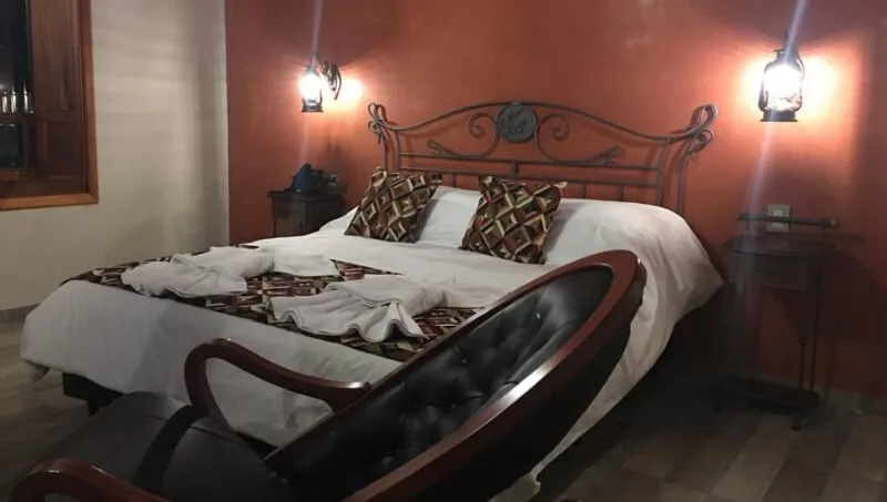 Tras un buen trecho en camino de tierra, aparece en medio de maíces secos (esperando la cosecha) y lotes trillados, el hotel. Su estética acompaña el paisaje campestre, parece una estancia.