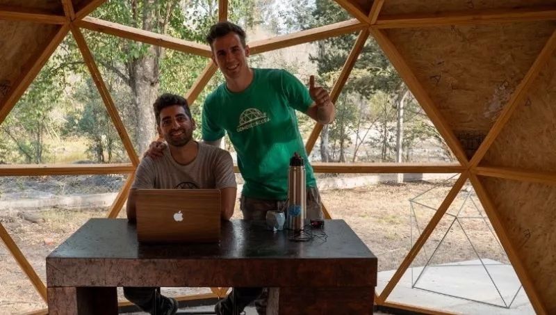 Juan José Sanchez y Juan Ignacio Olveira son quienes hace 7 años, buscando un desafío, crearon Domos Córdoba, una empresa que se dedica a la construcción de domos geodésicos de madera, ofreciendo dos formatos, pensados para dos públicos diferentes: domos en kit para su autoconstrucción y también proyectos completos premium que incluyen planos y habilitaciones.