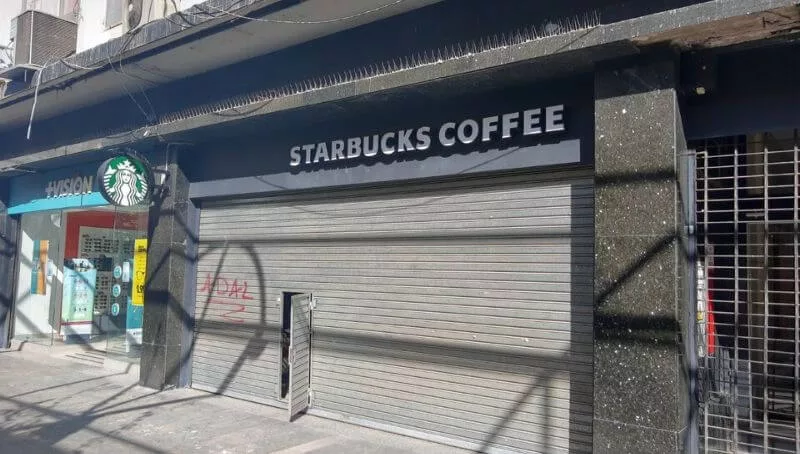 Me crucé 5 policías la primera cuadra, ninguno me preguntó si mi número de DNI terminaba con número impar. Recorrí la 25 de Mayo desde Rivadavia hasta 9 de Julio, ida y vuelta. Del local de Starbucks solo queda el cartel, esa sucursal no volverá a encender sus luces porque es uno de los ocho locales que Alsea (licenciataria de Starbucks en el país) cierra en Argentina. El localazo de 150 m2 donde funcionaba Meroli sigue a la espera de un audaz inquilino.