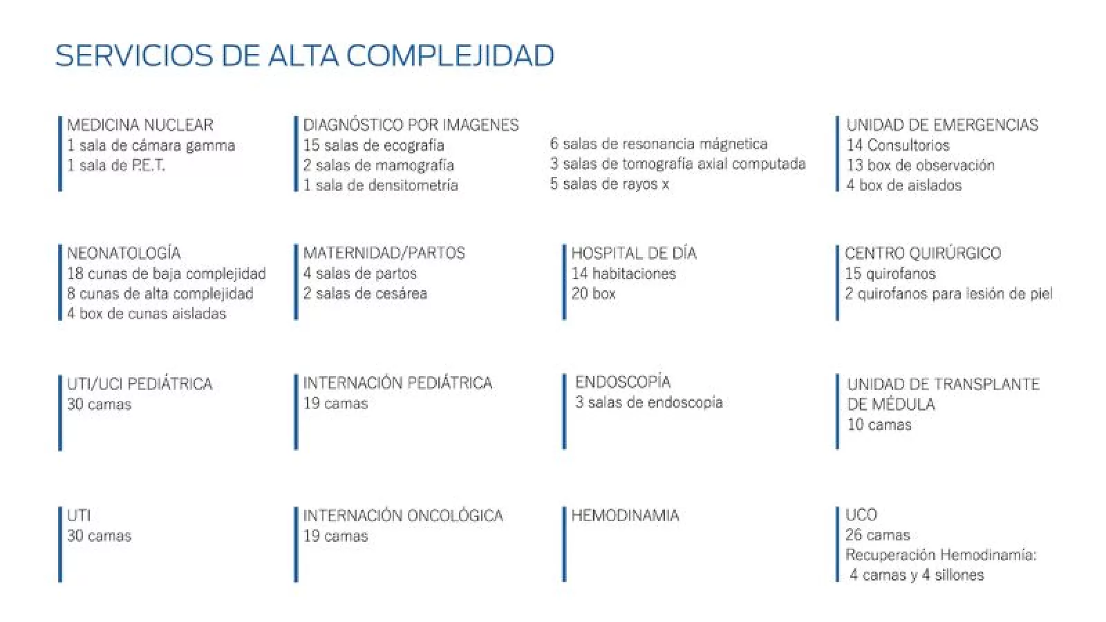 - Un Hospital General de Alta Complejidad, conformado por dos edificios: uno de hospitalización y otro de consulta externa.