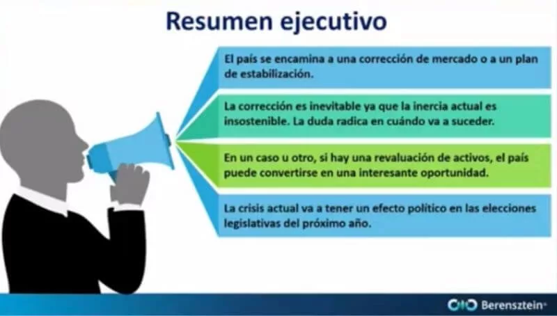 La duda de Berenstein es si la devaluación que corrija (en todo o en parte la brecha cambiaria) será por un plan de estabilización propio (al estilo Plan Austral) o será por las mismas fuerzas del mercado, como sucedió con el Rodrigazo o a la salida de la Convertibilidad en 2001.