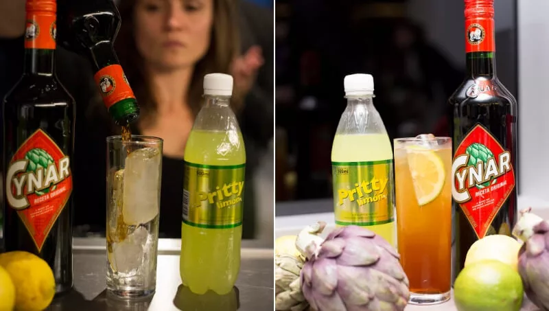 Aunque no hay “una” fórmula para el trago, lo recomendable es una parte de Cynar y tres partes de Pritty, con hielo a gusto y discreción (por cierto, probamos las dos intensidades de Cynar con Pritty y queda un trago muy agradable).