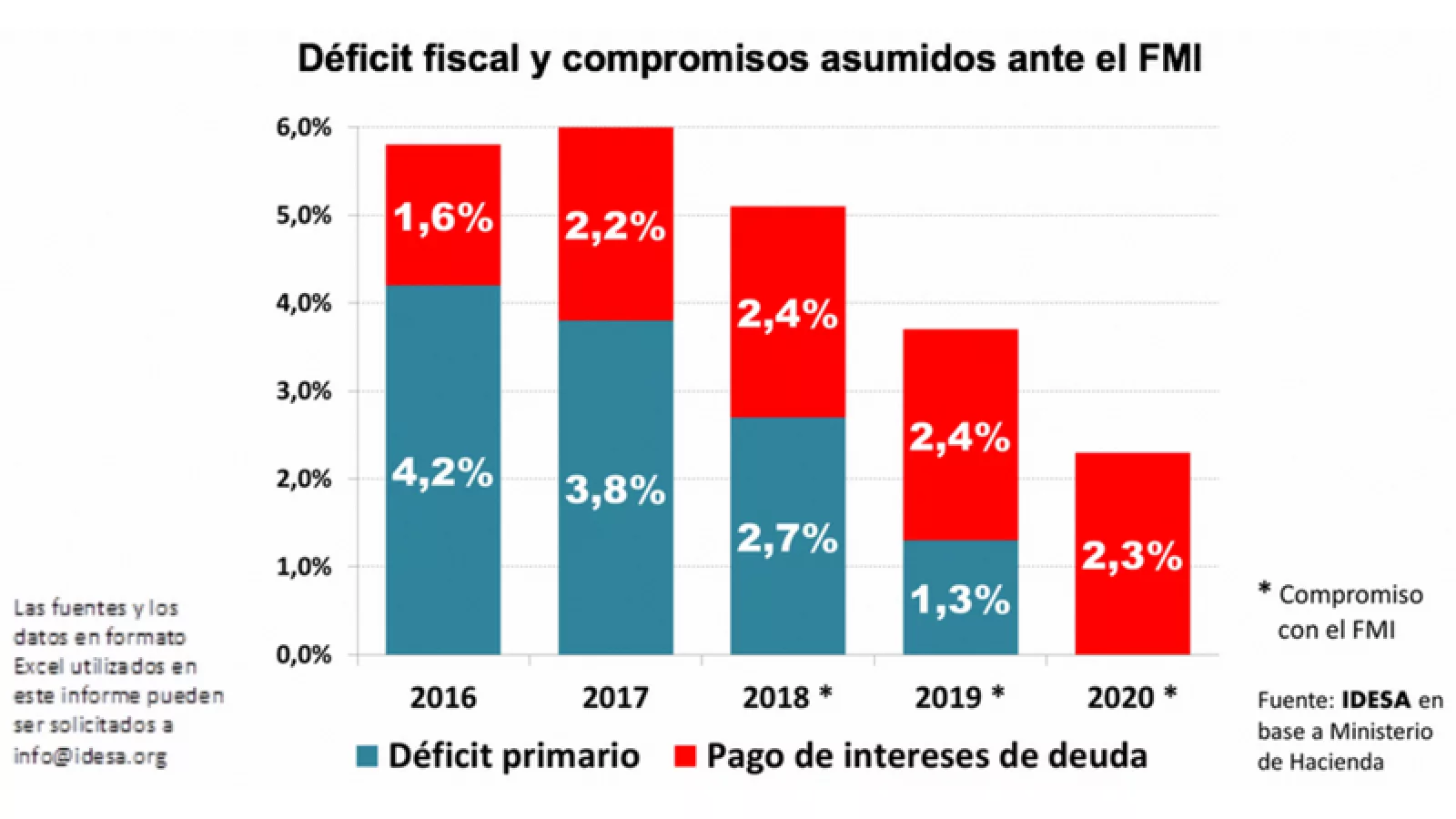 - Para el año 2020 se acordó con el FMI eliminar el déficit primario pero los intereses aumentarán al 2,3 % del PBI.