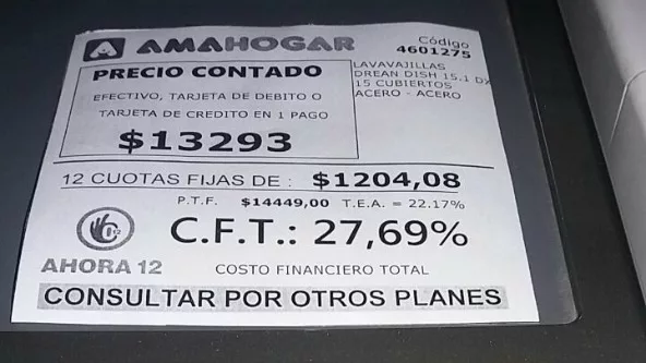 Lamentablemente las grandes cadenas, no tienen demasiado conducta y desconocen el termino competencia. Tuve una mala experisncia este sabado 28/01. En Misimundo de Carlos Paz, fui a comprar un lavarropa. Ya estaba la nueva carteleria en cada producto. Las 12 o 18cuotas no existian, era todo la 24 meses.Precio de contado $ 9000 y financiado a 24 meses , cuota de $ 765. En buen romance. en 24 meses te salia el lavarropa casi el doble, un interes cercano al 4.3 % mensual. Si esto no es una usura, la usura donde esta?
