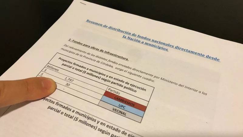 Esta discrecionalidad -muestra el documento- no se replica en los fondos para infraestructura que reparte la provincia: 55% de los fondos distribuidos por la gestión Schiaretti -siempre según el informe- fueron a intendentes de Cambiemos, 41% a ciudades gobernadas por UpC y el 4% restante a comunidades que votaron a fuerzas vecinalistas.